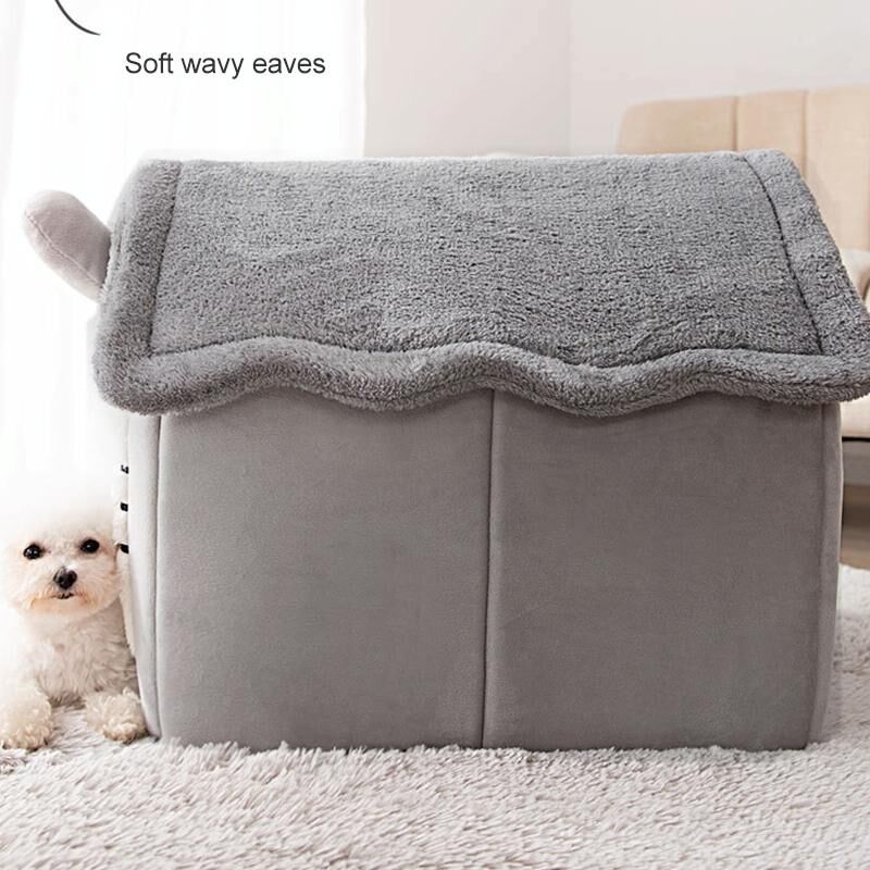 House Type Universal Removable and Washable Pet Dog Cat Bed Pet Supplies, Size:L(Yellow Flower)
