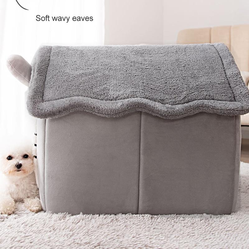 House Type Universal Removable and Washable Pet Dog Cat Bed Pet Supplies, Size:M(Yellow Flower)