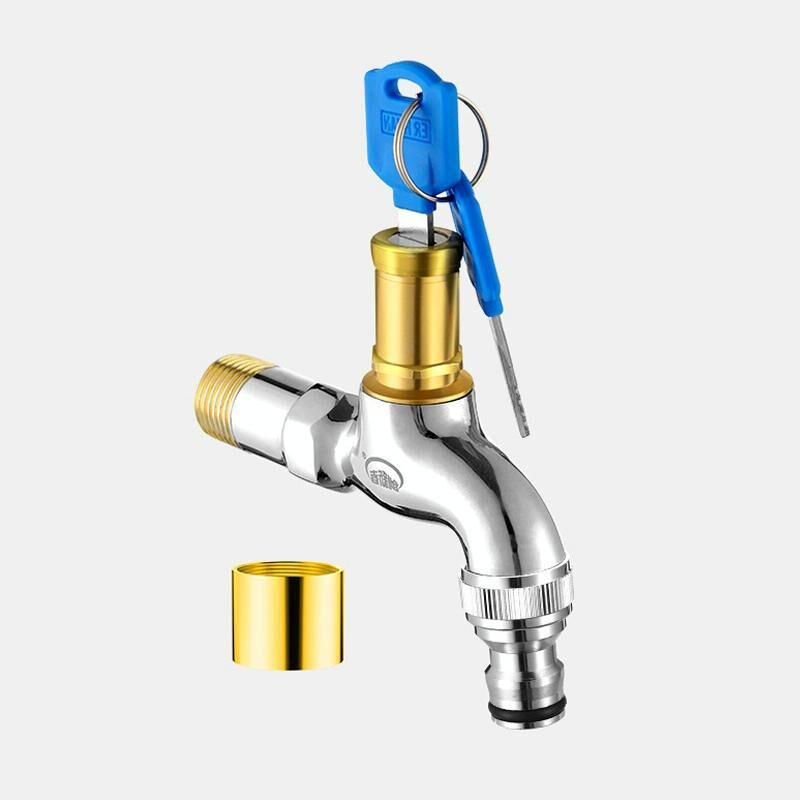 Οικιακή βρύση με κλειδαριά Εξωτερική αντικλεπτική βρύση 4 λεπτών, 规格: Πιπίλα από χαλκό με κλειδί