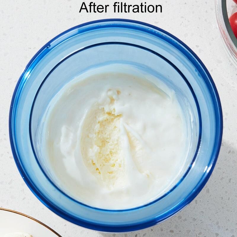 7. How to use: just pour the yogurt into the strainer, cover it and put it into the refrigerator, then you can get the mellow yogurt (the yogurt you pour in can not be more than 450g)