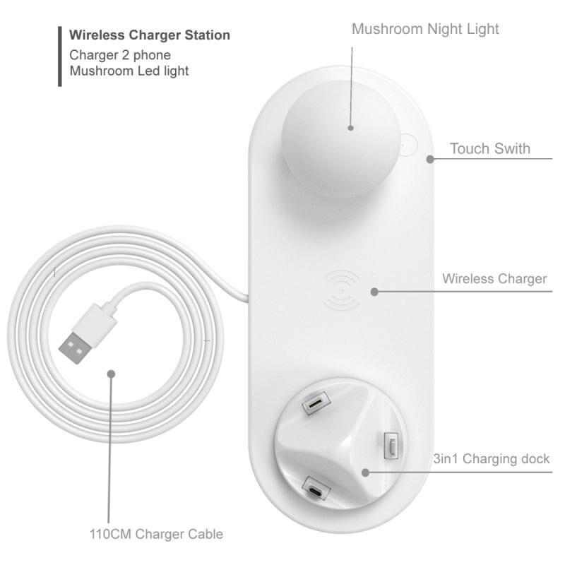 2. The wireless charger and 3 charging jacks solve the problem that the charging device does not meet the requirements and are suitable for charging all devices.