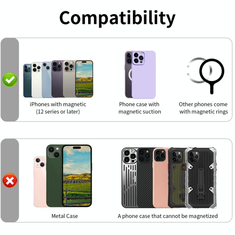3. Magnetic adsorption design, easy to attach, can be firmly attached to the back of the phone or MagSafe phone case.