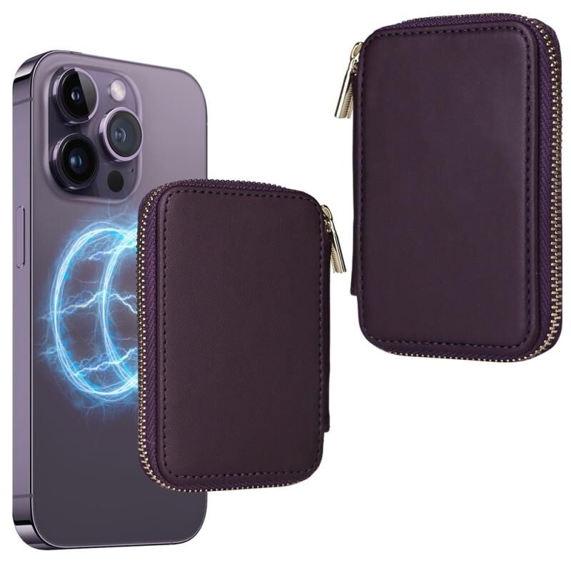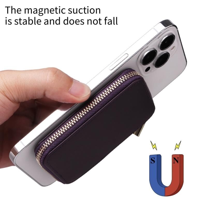 HS-005 MagSafe Magnetic Zipper Card Bag Mobile Phone Back Sticker(Dark Purple)