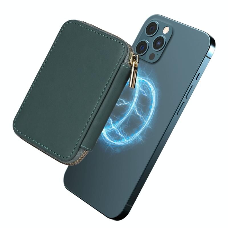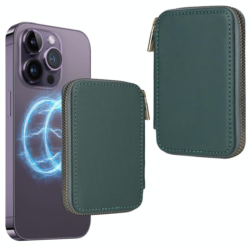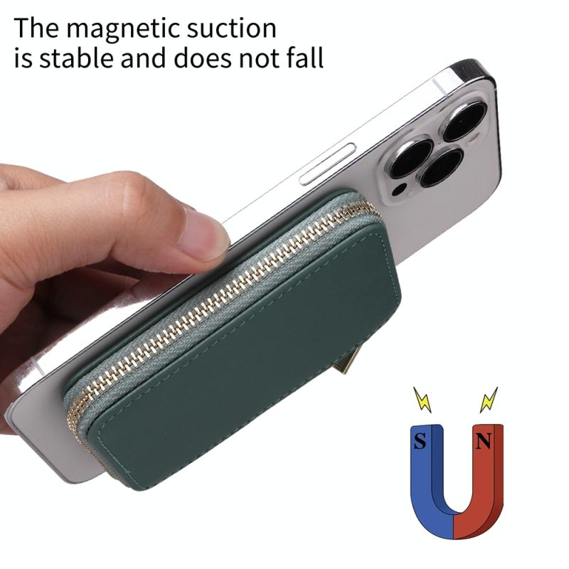 HS-005 MagSafe Magnetic Zipper Card Bag Mobile Phone Back Sticker(Green)