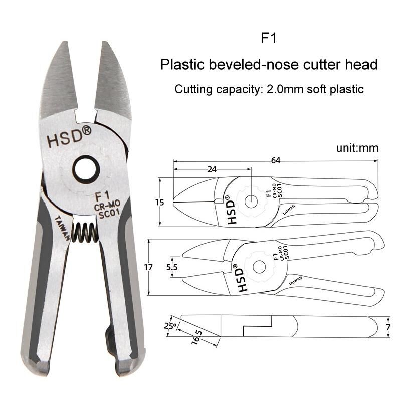6. Ικανότητα κοπής: F1/F1S κατάλληλο για κοπή μαλακού πλαστικού έως 2mm· S2/S2.1/S2S κατάλληλο για κοπή χάλκινου σύρματος έως 1mm και σιδερένιου σύρματος έως 0.5mm
