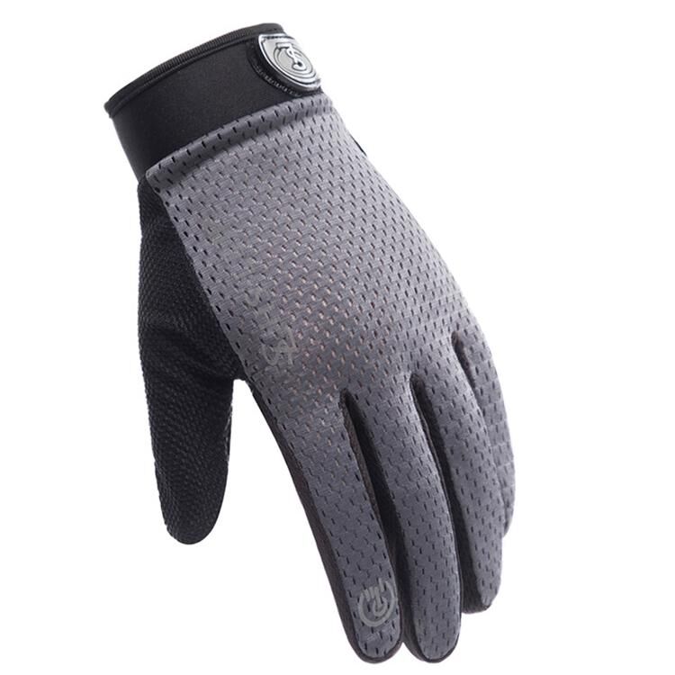HSLEJP Outdoor Sports Breathable Touch Screen Antiskid Cycling Full Finger Gloves, Size: L(Gray)