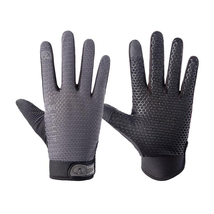 HSLEJP Outdoor Sports Breathable Touch Screen Antiskid Cycling Full Finger Gloves, Size: M(Gray)