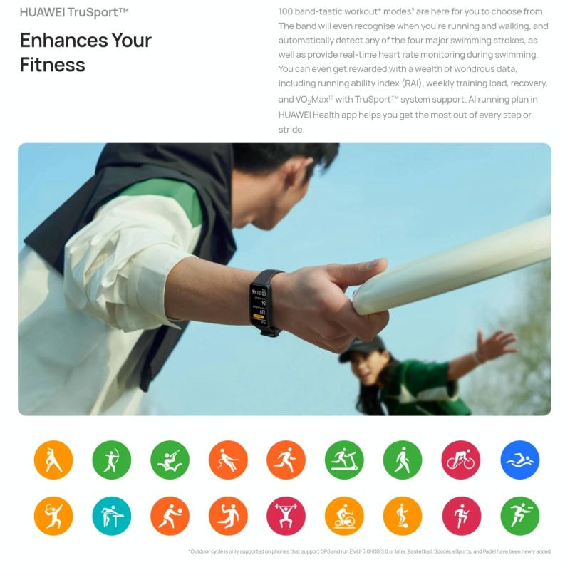 - Use for up to 14 days (scenario: Heart rate is always on, scientific sleep is turned off at night, an average of 30 minutes of exercise per week, message notifications are turned on (50 messages per day, 6 calls, 3 alarms), and the screen is turned on 200 times a day. Data Sourced from Huawei labs, the actual battery life may vary depending on usage habits.)