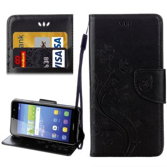 Για Huawei Y6 II Πεταλούδες LOVE για λουλούδια ανάγλυφη οριζόντια Flip δερμάτινη θήκη με υποδοχές για κάρτες & πορτοφόλι & κορδόνι (μαύρο)