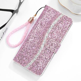 Για το Huawei Y5 (2019) Glitter Powder Horizontal Flip Leather Case με υποδοχές για κάρτες & θήκη & κορδόνι (ροζ)