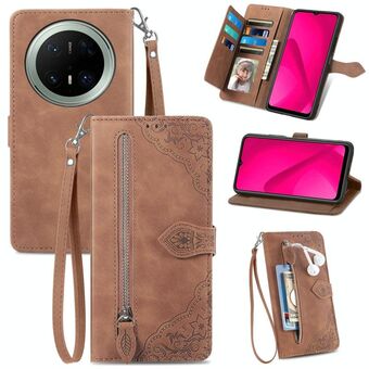 For Huawei Mate 70 Pro Embossed Flower Zipper Leather Phone Case(Brown)