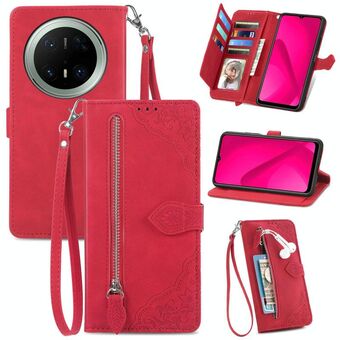 For Huawei Mate 70 Pro+ Embossed Flower Zipper Leather Phone Case(Red)