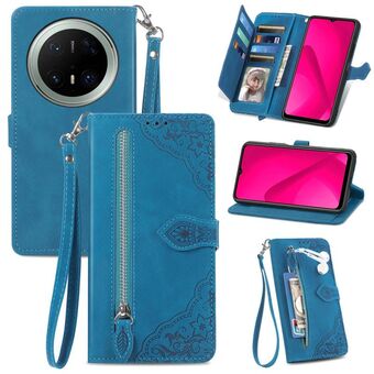 For Huawei Mate 70 Pro Embossed Flower Zipper Leather Phone Case(Blue)