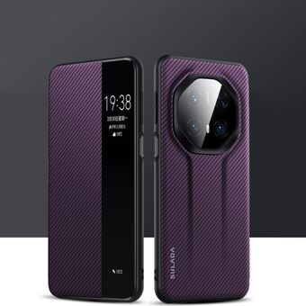 For Huawei Mate 70 SULADA Kevlar 600D Texture Smart Window Leather Phone Case(Purple) (SULADA)