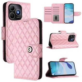 For Huawei Enjoy 80s 4G Rhombic Texture Flip Leather Phone Case with Lanyard(Pink)