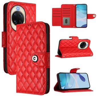 For Huawei Enjoy 80s 4G Rhombic Texture Flip Leather Phone Case with Lanyard(Red)