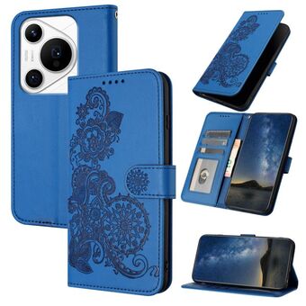 For Huawei Pura 70 Datura Flower Embossed Flip Leather Phone Case(Blue)