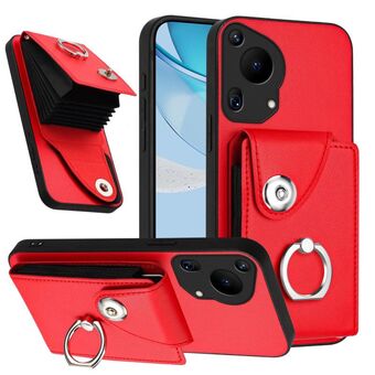 For Huawei Pura 70 Organ Card Bag Ring Holder Phone Case(Red)
