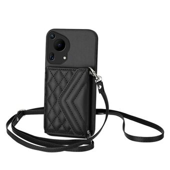 For Huawei Pura 70 Rhombic Texture Card Bag RFID Phone Case with Long Lanyard(Black)