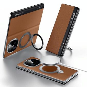 For Huawei Mate X6 SULADA Smart View Window MagSafe Magnetic Holder Leather Phone Case(Brown) (SULADA)