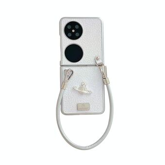 For Huawei P50 Pocket Kirin Pattern Full Coverage Phone Case with Wrist Strap(White)