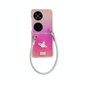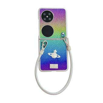 For Huawei P50 Pocket Kirin Pattern Full Coverage Phone Case with Wrist Strap(Rainbow)