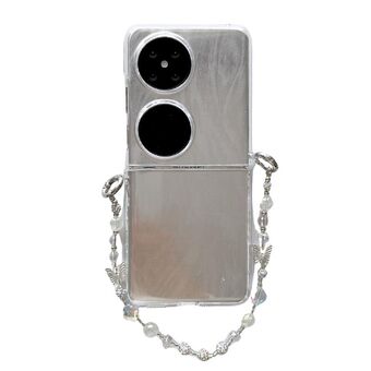 For Huawei P50 Pocket Feather Butterfly Pattern PC Side Buckle Full Coverage Shockproof Phone Case with Bracelet(3D Butterfly)