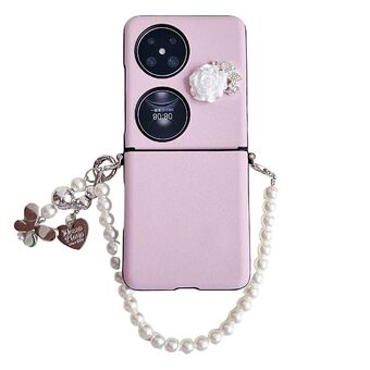 For Huawei Pocket 2 Leather Texture 3D Rose Side Buckle Full Coverage Shockproof Phone Case with Pearl Bracelet(Pink)