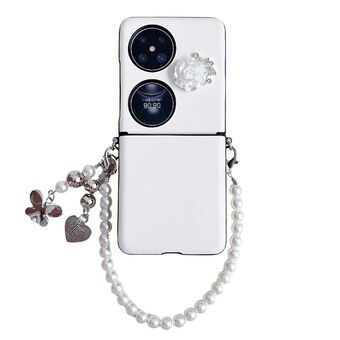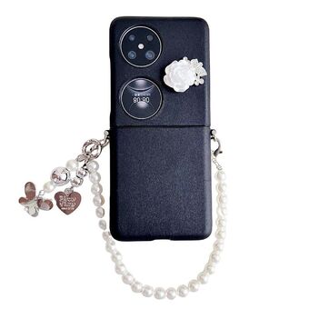 For Huawei Pocket 2 Leather Texture 3D Rose Side Buckle Full Coverage Shockproof Phone Case with Pearl Bracelet(White)