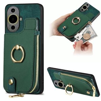 For Huawei nova 11 Cross Leather Ring Vertical Zipper Wallet Back Phone Case(Green)