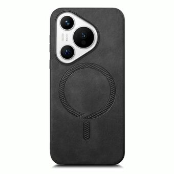 For Huawei Pura 70 Ultra Solid Color Retro Magsafe PU Back Cover Phone Case(Black)