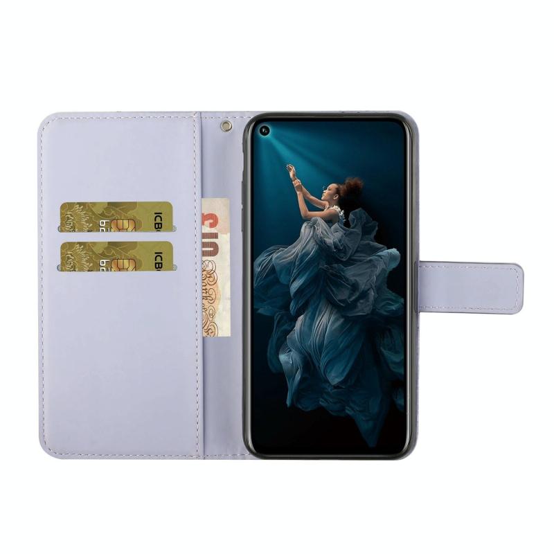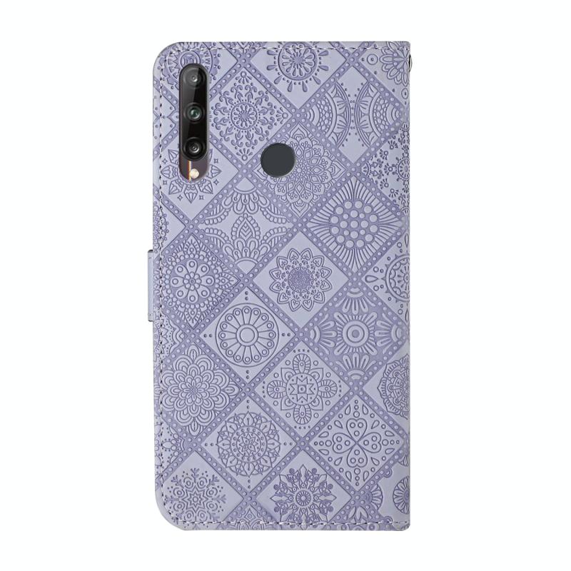 Θήκη Huawei P40 lite E / Y7p Εθνοτικό Στυλ, ανάγλυφο σχέδιο, οριζόντια δερμάτινη θήκη με βάση στήριξης & υποδοχές καρτών & πορτοφόλι & κορδόνι (Λευκό)