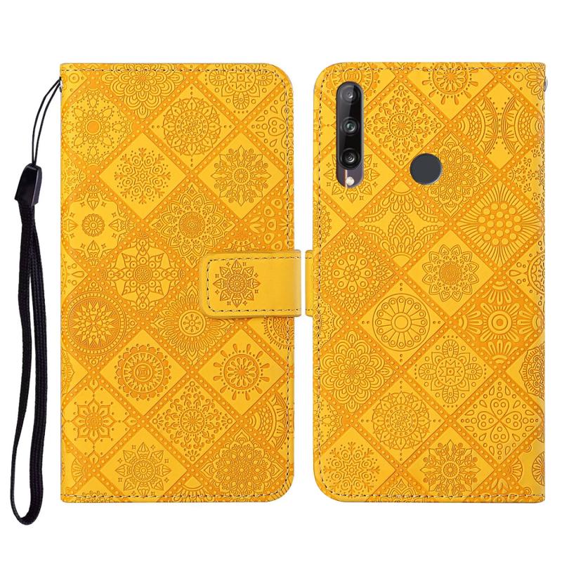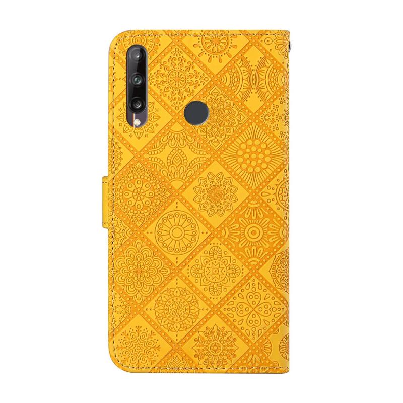 Θήκη Huawei P40 lite E / Y7p Εθνοτικό Στυλ, ανάγλυφο σχέδιο, οριζόντια δερμάτινη θήκη με βάση στήριξης & υποδοχές καρτών & πορτοφόλι & κορδόνι (Λευκό)