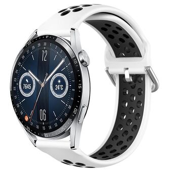 Για το Huawei Watch GT3 Pro 43mm 20mm διάτρητη αναπνεύσιμη αθλητική ζώνη ρολογιού σιλικόνης (λευκό + μαύρο)