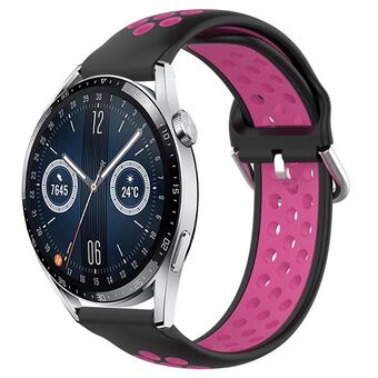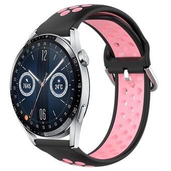Για το Huawei Watch GT3 Pro 43mm 20mm διάτρητη αναπνεύσιμη αθλητική ζώνη ρολογιού σιλικόνης (μαύρο + ροζ)