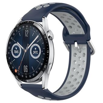 Για το Huawei Watch GT3 42mm 20mm διάτρητη αναπνεύσιμη αθλητική ζώνη ρολογιού σιλικόνης (Μπλε μεσάνυχτα + γκρι)