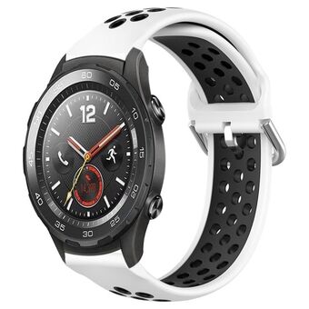 Για το Huawei Watch 2 20 χιλιοστά διάτρητη αναπνεύσιμη αθλητική ζώνη ρολογιού σιλικόνης (λευκό + μαύρο)