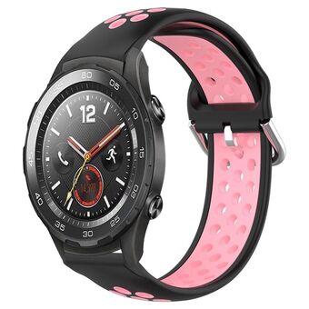 Για το Huawei Watch 2 20 χιλιοστά διάτρητη αναπνεύσιμη αθλητική ζώνη ρολογιού σιλικόνης (μαύρο + ροζ)