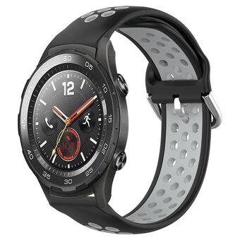 Για το Huawei Watch 2 20mm διάτρητο αναπνεύσιμο αθλητικό λουράκι σιλικόνης (μαύρο + γκρι)