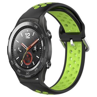 Για το Huawei Watch 2 20 χιλιοστά διάτρητη αναπνεύσιμη αθλητική ζώνη ρολογιού σιλικόνης (πράσινο + μαύρο)
