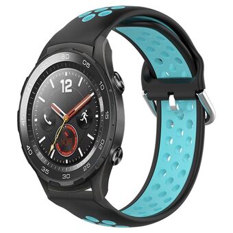 Για το Huawei Watch 2 20 χιλιοστά διάτρητη αναπνεύσιμη αθλητική ζώνη ρολογιού σιλικόνης (μαύρο + μπλε)