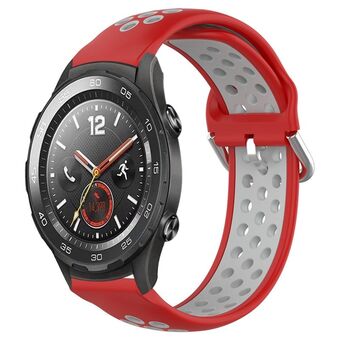 Για το Huawei Watch 2 20 χιλιοστά διάτρητη αναπνεύσιμη αθλητική ζώνη ρολογιού σιλικόνης (κόκκινο + γκρι)