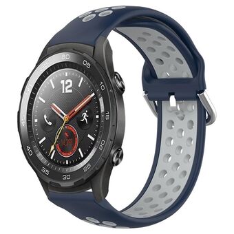 Για το Huawei Watch 2 20 χιλιοστά διάτρητη αναπνεύσιμη αθλητική ζώνη ρολογιού σιλικόνης (μπλε μεσάνυχτα + γκρι)