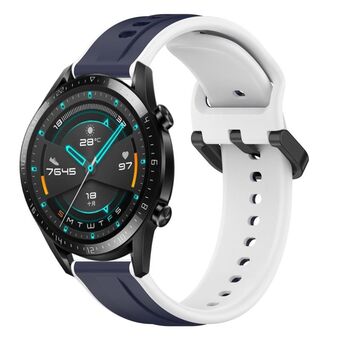 Για το Huawei GT2 46mm 22mm κυρτό βρόχο σιλικόνης δύο χρωμάτων (Μπλε μεσάνυχτα + Λευκό)