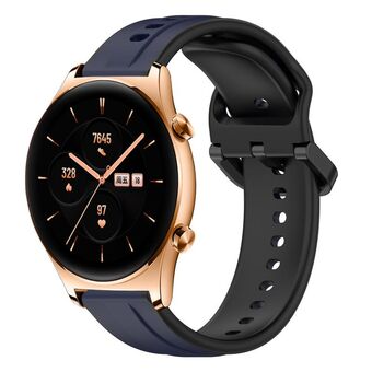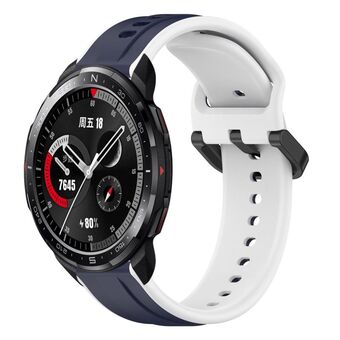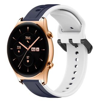 Για το Honor Watch GS 3 22 χιλιοστά κυρτό βρόχο δύο χρωμάτων σιλικόνης ρολόι μπάντα (Midnight Blue + Λευκό)