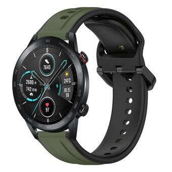 Για το Honor Magic Watch 2 46mm 22mm Convex Loop Δύο χρωμάτων σιλικόνης ρολόι μπάντα ρολογιού (Olive Green + Μαύρο)