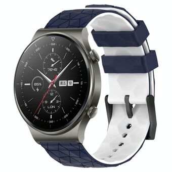 Για το Huawei Watch GT 2E 22 χιλιοστά ποδοσφαιρικό μοτίβο δύο χρωμάτων σιλικόνης ρολόι μπάντα ρολογιού (Midnight Blue + Λευκό)