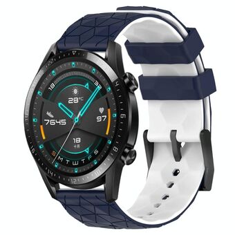 Για το Huawei GT2 46mm 22mm ποδοσφαιρικό μοτίβο δύο χρωμάτων σιλικόνης ρολόι μπάντα (Midnight Blue + Λευκό)