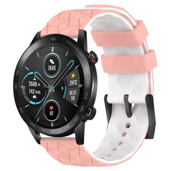 Για Honor Magic Watch 2 46mm 22mm ποδοσφαιρικό μοτίβο δύο χρωμάτων σιλικόνης ρολόι μπάντα ρολογιού (ροζ + λευκό)