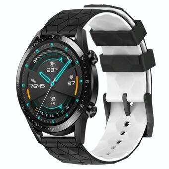 Για Huawei GT2 46mm 22mm ποδοσφαιρικό μοτίβο δύο χρωμάτων σιλικόνης ρολόι μπάντα (μαύρο + λευκό)